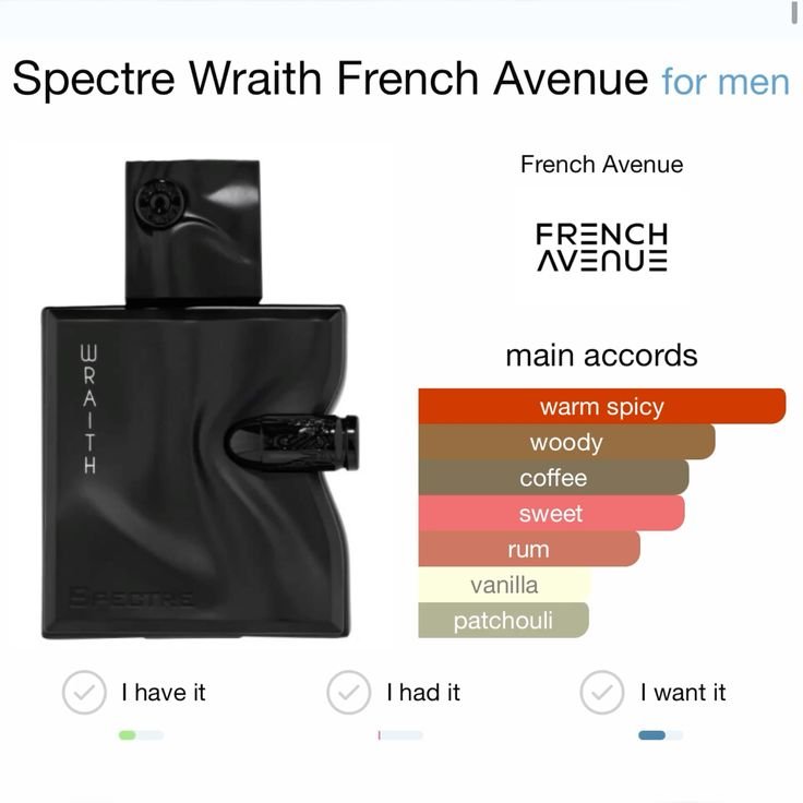 Entrez dans l’univers enchanteur de l’eau de parfum Spectre Wraith par French Avenue . Cette composition mystérieuse a été conçue avec soin et passion pour vous charmer à chaque vaporisation. Préparez-vous, car vous avez rendez-vous avec un parfum des plus remarquables.